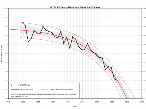 | PIOMAS yearly minimum Arctic ice volume (click to enlarge) |